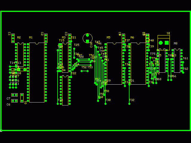 Le typon de la carte processeur. Cliquer sur l'image pour faire apparaitre le typon en pleine résolution (107 ko). La platine fait 6,35 x 4 pouces (environ 160 x 100 mm) et la résolution du fichier est de 600 dpi. |