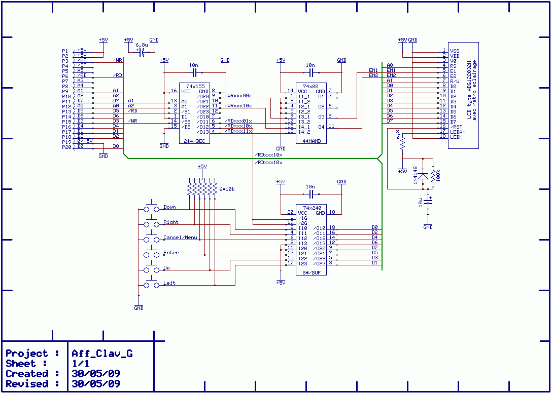 Une carte clavier/affficheur avec : - 6 touches, - Un afficheur LCD graphique à 122*32 pixels. |