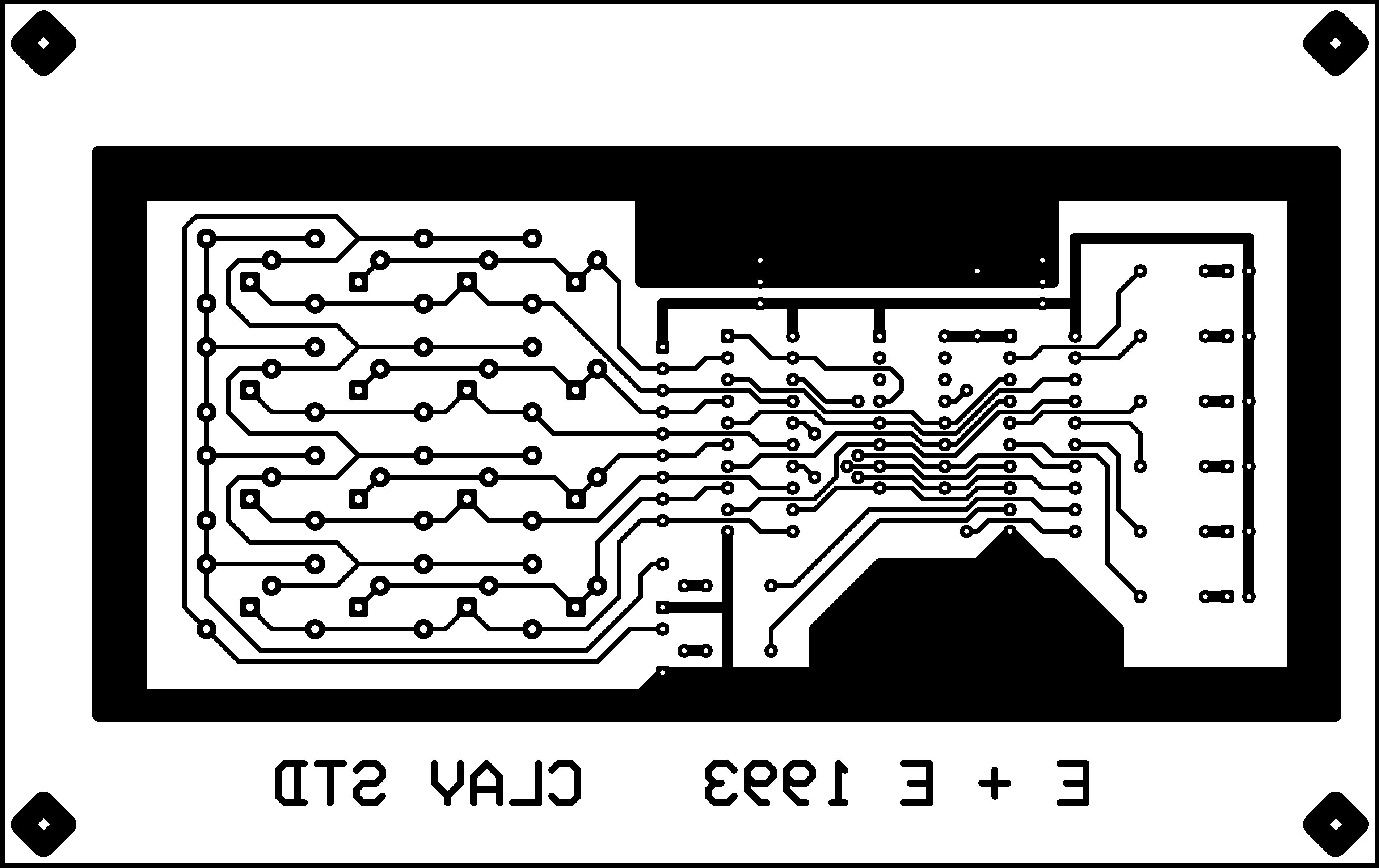 Cliquer sur l'image pour faire apparaitre le typon en pleine résolution (92 ko). La platine fait 160 x 100 mm et la résolution du fichier est de 600 dpi. |