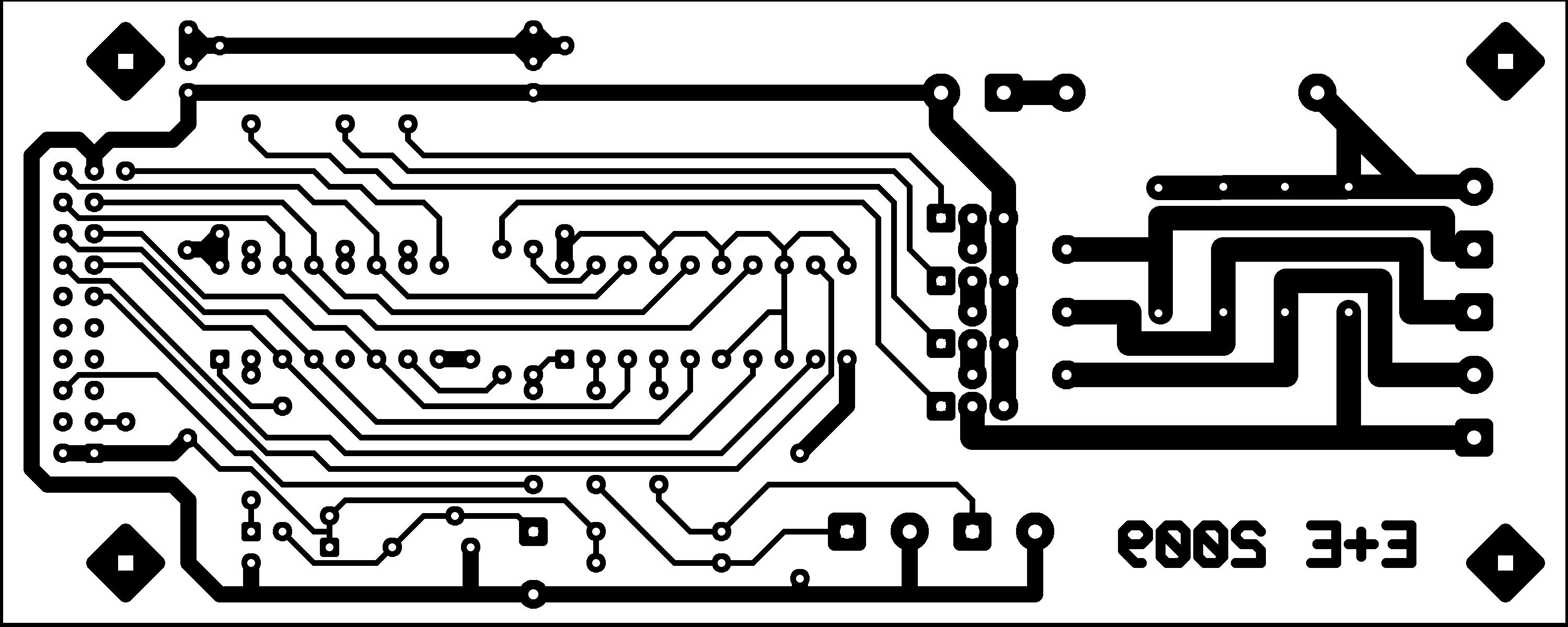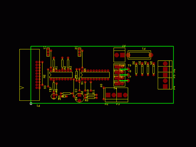 Le typon de la carte. Cliquer sur l'image pour faire apparaitre le typon en pleine résolution (92 ko). La platine fait 5 x 2 pouces et la résolution du fichier est de 600 dpi. |