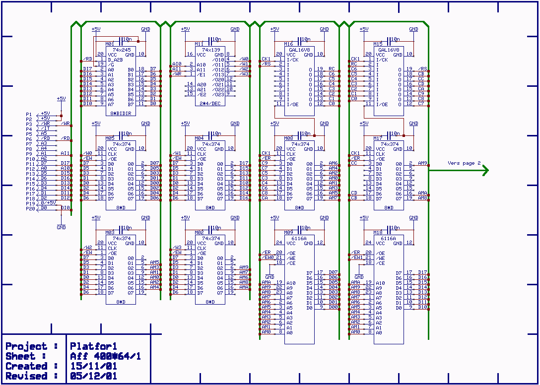 Une plateforme de test matérielle et logicielle pour montages à base de MCS51. Avec : - Clavier PC AT, - Afficheur 400*64, - Sortie pour LCD 2*16, bus I2C, RS232, extension,.... |