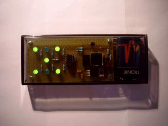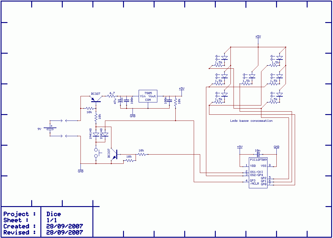 Un dé électronique basé sur un PIC 12F509. Extinction automatique. Une unique touche. |