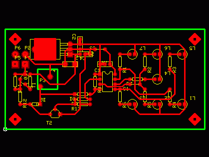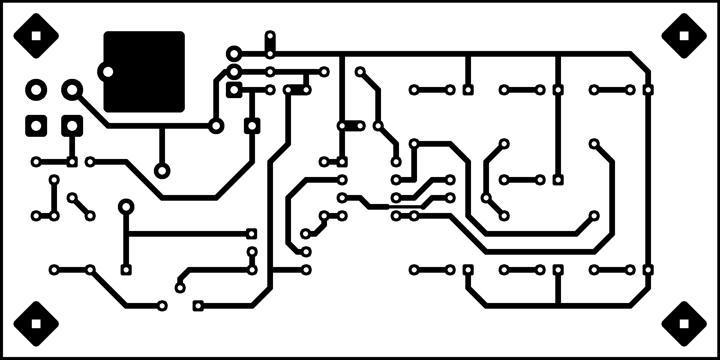 Le typon de la carte. Cliquer sur l'image pour faire apparaitre le typon en pleine résolution (37 ko). La platine fait 4 x 2 pouces et la résolution du fichier est de 600 dpi. |