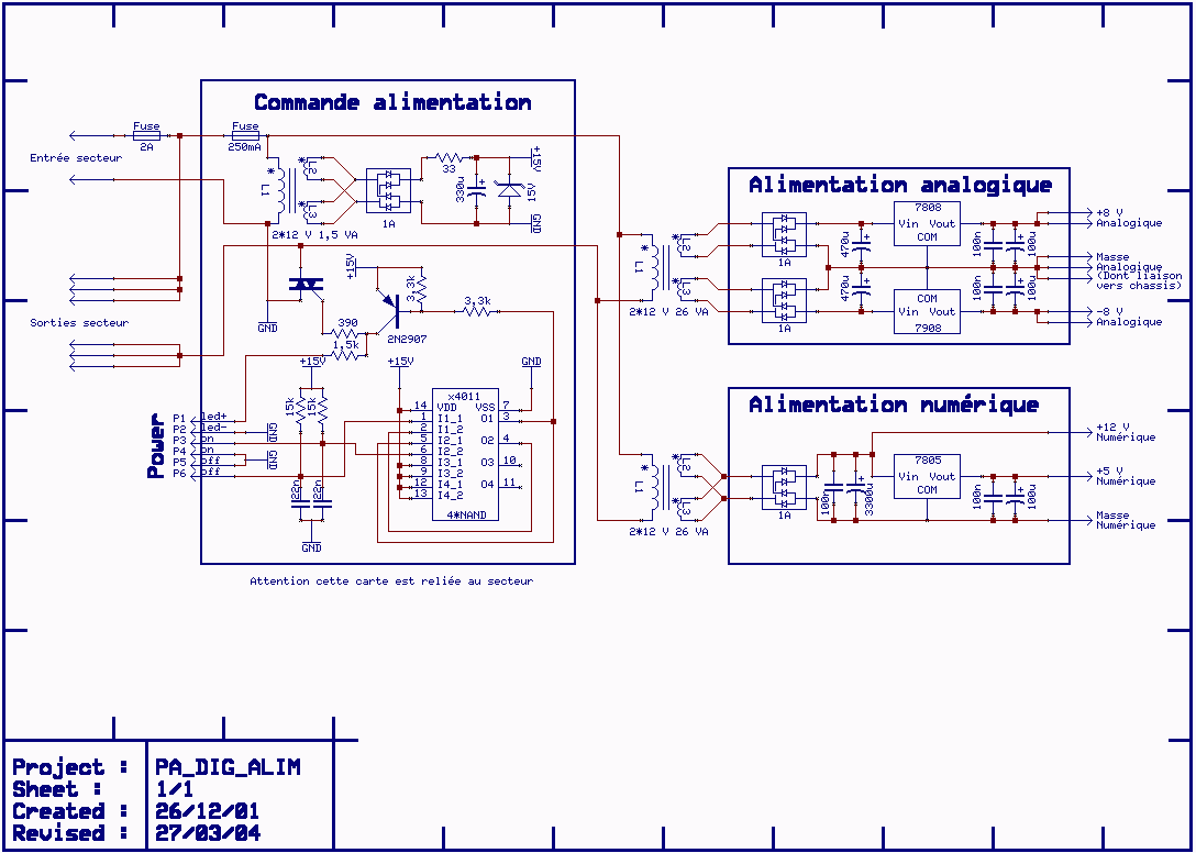 Les alimentations : - Des autres éléments de la chaîne HIFI, - De la partie analogique, - De la partie numérique. |