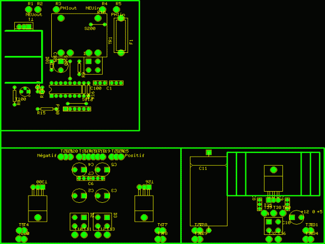 Trois petits circuits sans difficulté particulière. Ne pas oublier que sur celui en haut à gauche les composants sont reliés au secteur. Prévoir l'isolation suffisante avec le coffret et faire attention pendant les tests. |