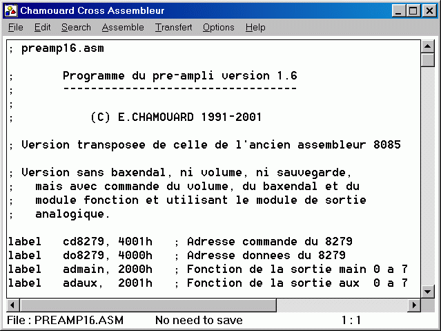 Le logiciel (source et exécutable) et sa documentation en version 1.6 : PREAMP16.ZIP (8ko) (l'executable en format intel-32). |