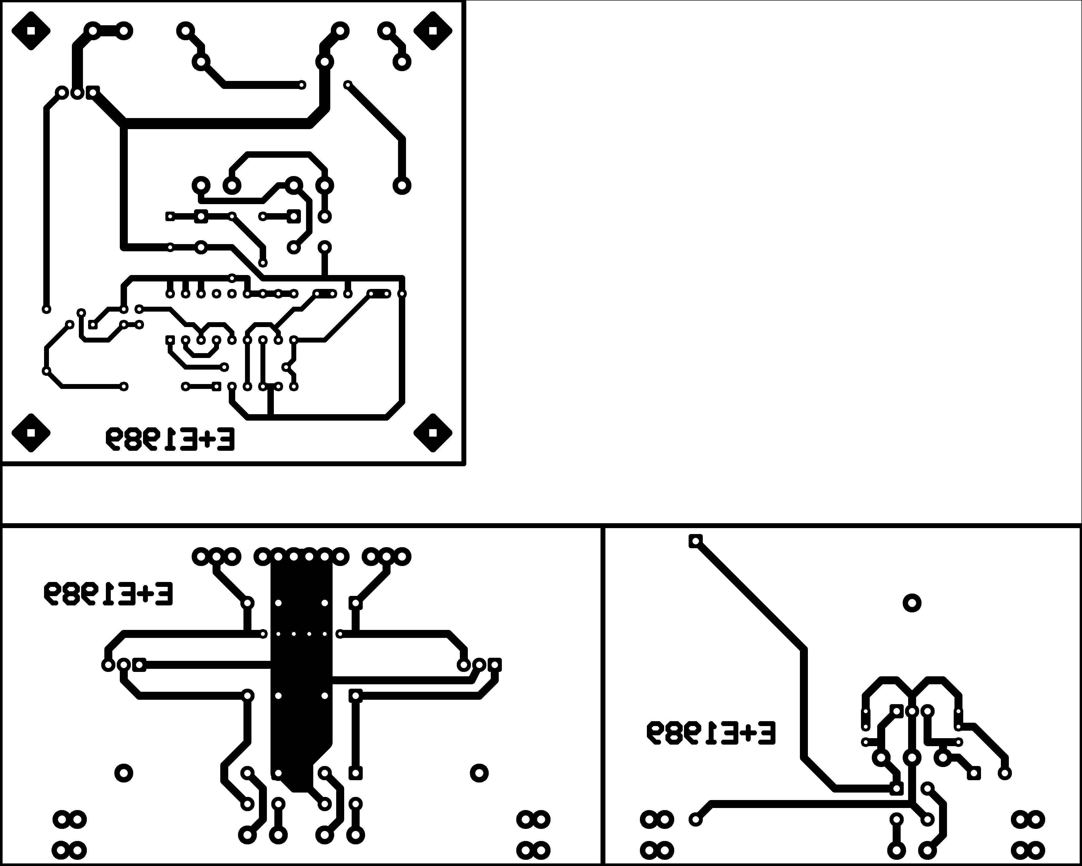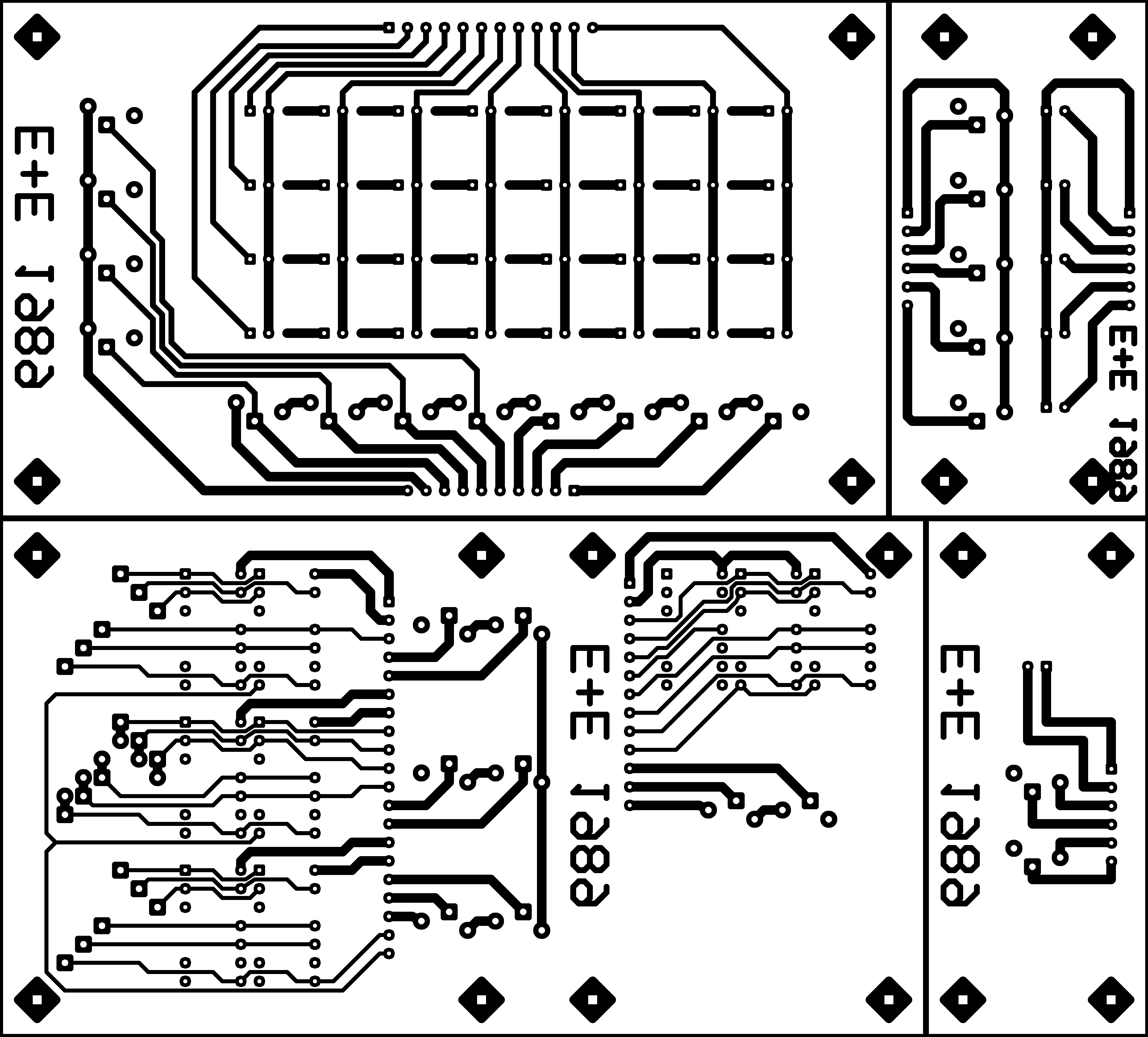 Le typon des parties afficheur/clavier. Cliquer sur l'image pour faire apparaître le typon en pleine résolution (176 ko) ou ici pour la télécharger. La platine fait 6,2 x 5,6 pouces et la résolution du fichier est de 600 dpi. |