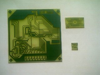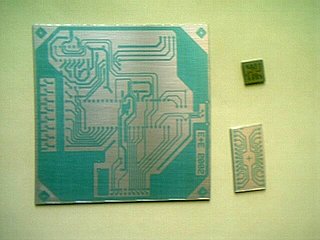La première étape consiste à découper le circuit dans une plaque présensibilisée (simple ou double face). Je fais toujours quelques petits bouts pour vérifier le temps d'exposition surtout si je change de marque de présensibilisé. |