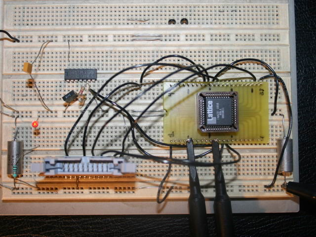 Le montage de test réalisé sur une Labdec en utilisant un adaptateur PLCC 44. |