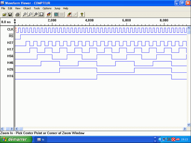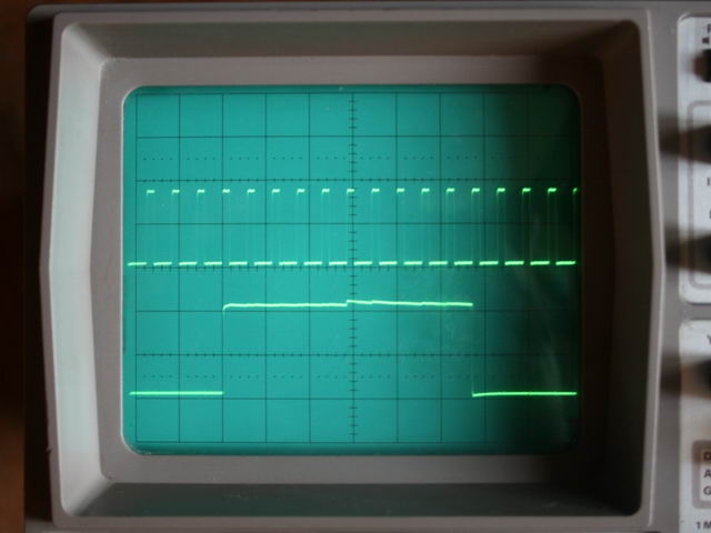 Résultat au scope de l'entrée d'horloge (en haut) et la sortie divisée par 20 (en bas). |