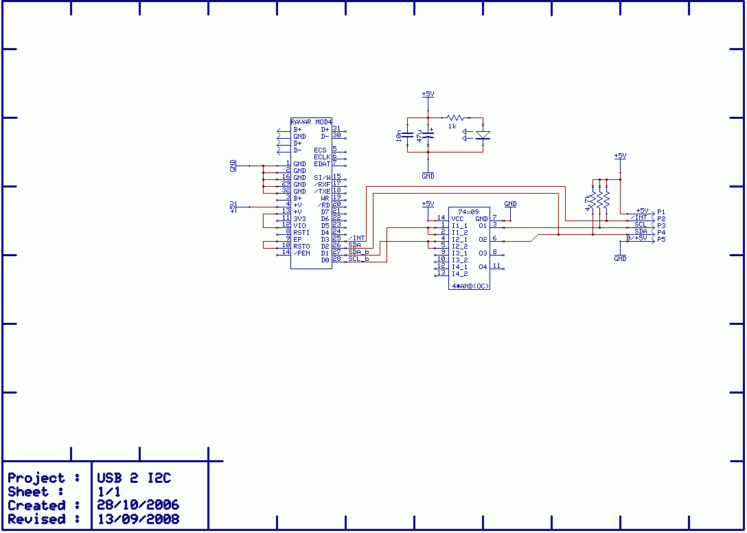 Interface USB<->I2C utilisant un module RAVAR MOD4 |