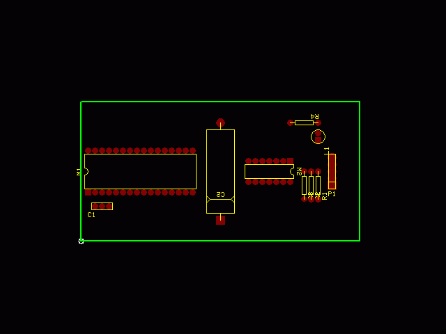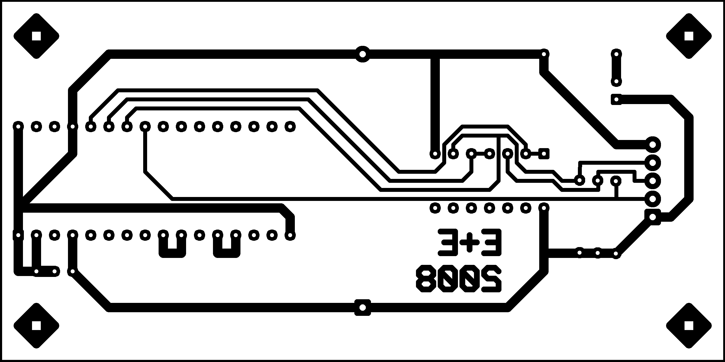 Le typon de la carte. Cliquer sur l'image pour faire apparaitre le typon en pleine résolution (33 ko). La platine fait 4 x 2 pouces et la résolution du fichier est de 600 dpi. |