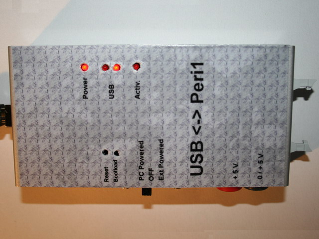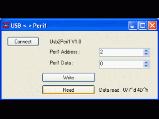 Une interface entre un PC et le bus standard "Peri1" que j'utilise pour les montages à microcontrôleur. Utilisé : - A des fins de test et de mise au point des cartes d'extension, - Pour des applications rarement utilisées comme le programmateur de PROM. Remplace mon ancienne interface à base de port parallèle (qu'il n'y a plus sur mon PC !). |
