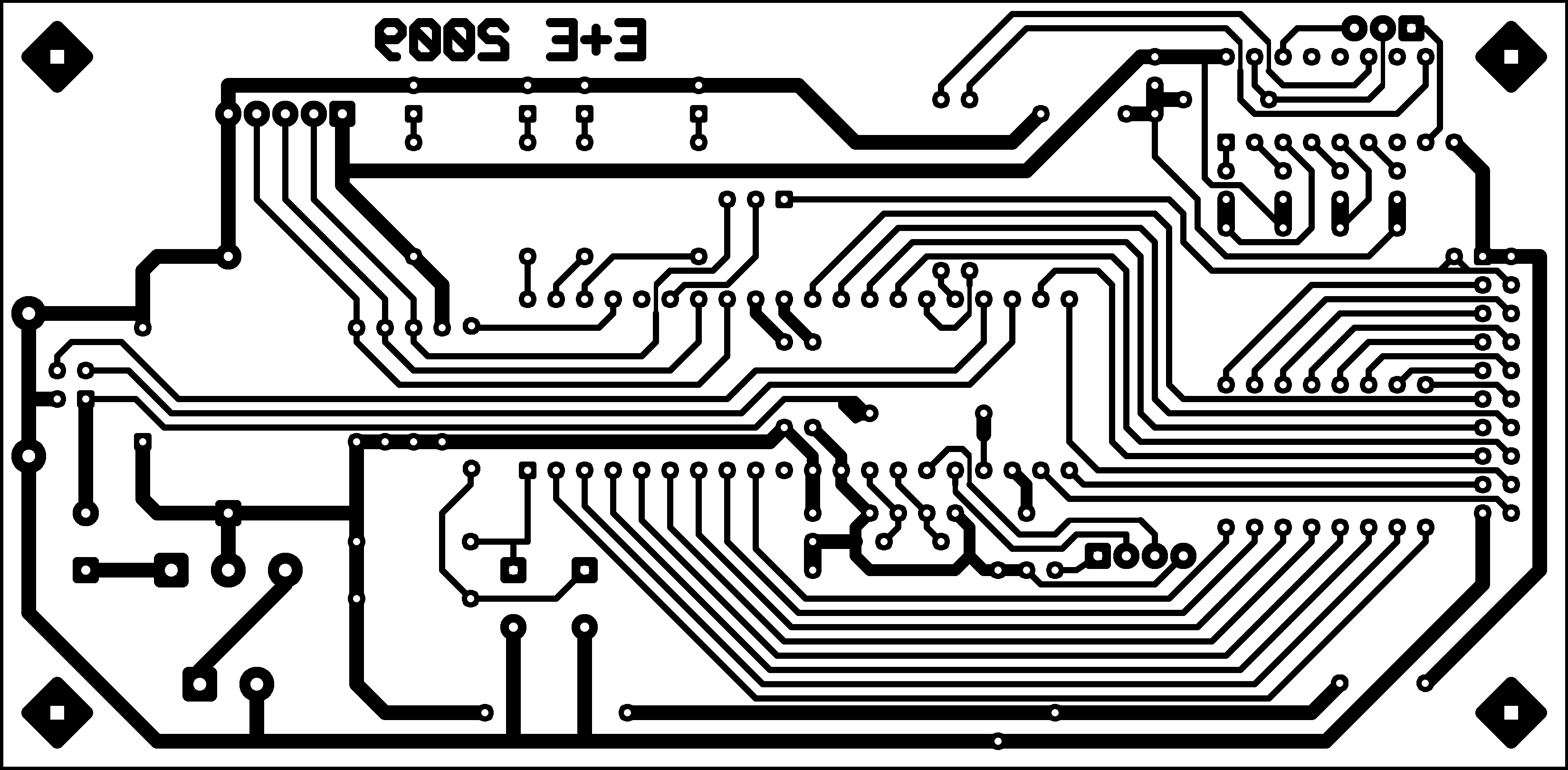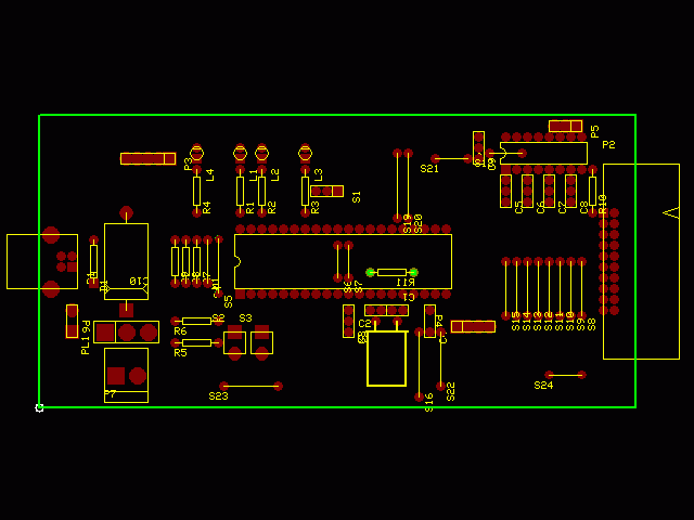 Le typon de la carte. Cliquer sur l'image pour faire apparaitre le typon en pleine résolution (94 ko). La platine fait 5,5 x 2,7 pouces et la résolution du fichier est de 600 dpi. |
