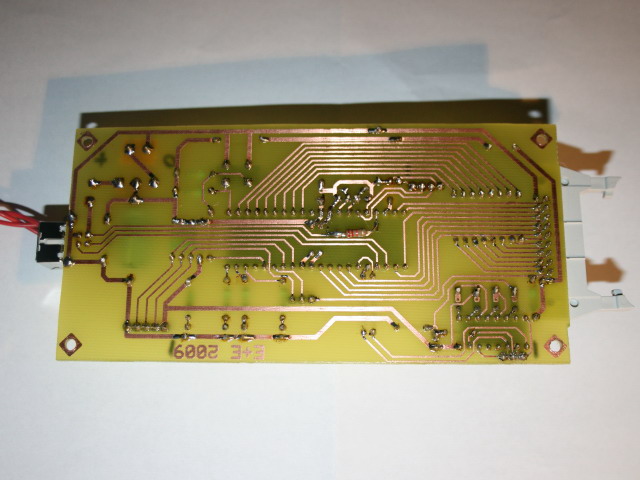 Le côté soudures montrant la résistance de 22 k implantée sous le PIC. |