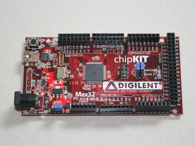 Une carte rapide et puissante (32 bits à 80 MHz, 512k de flash et 128k de RAM) de Digilent avec un processeur PIC32MX795F512L de Microchip. Juste testée mais pas encore utilisée vraiment. |