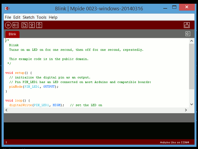 J'utilise la version modifiée de l'IDE Arduino qui est compatible des cartes chipKIT que j'utilise. Hormis quelques problèmes de compatibilité de bibliothèque avec les cartes chipKIT, cette version "Mpide 0023-windows-20140316" est stable et fiable. |