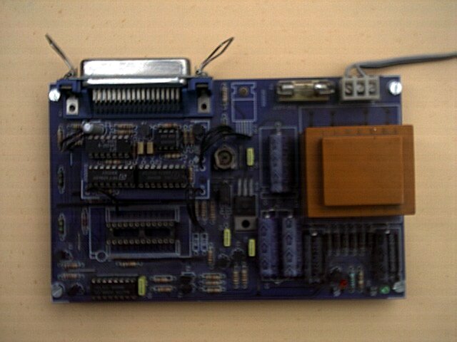 Un programmateur d'EPROM (et d'E2PROM et de microcontrôleur) connectable à un PC via l'interface port parallèle. |