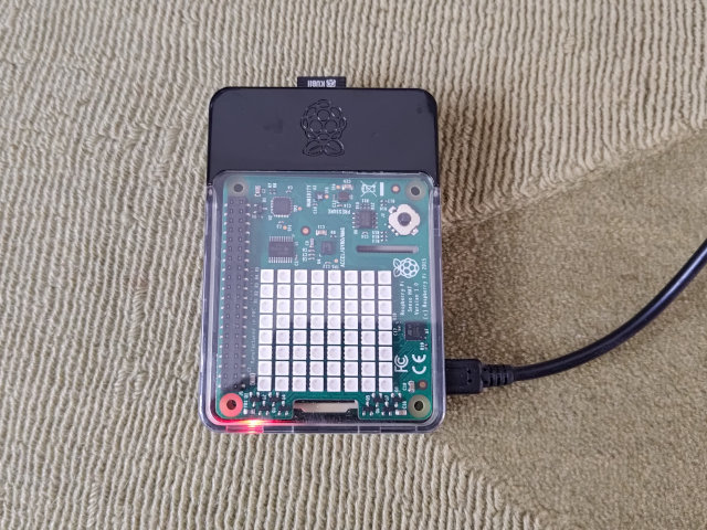 Pour afficher l'heure, j'ai utilisé une Raspebrry PI avec le Hat de l'AstroPI qui a un afficheur de 8x8 leds et un boitier transparent. Sur l'image, vous trouverez le script python (cliquer dessus pour accéder au source) et qui écoute le canal "Heure" du serveur MQTT et qui l'affiche sur le Hat. Il écoute aussi le canal "Info" que j'utilise pour afficher quelques informations au boot de la Raspberry. En bas, cliquez sur l'image pour voir une petite vidéo de l'affichage. |